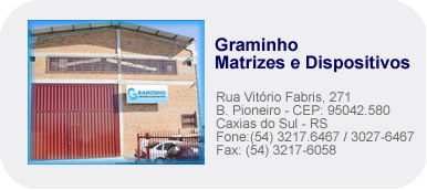 A Graminho vem atuando no mercado de moldes e dispositivos desde o inicio de 2000. Oferecendo soluções técnicas e de alto desempenho produtivo aos clientes das áreas têxtil, embalagens, movelaria, eletrodomésticos e automotiva. Localizada em um dos maiores centros produtores de ferramentais do país contamos com infra-estrutura e mão-de-obra qualificada para atender as atividades de desenvolvimento de moldes e matrizes.